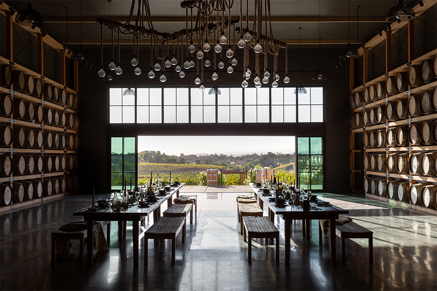 Danza del Sol Winery’s Barrel Room in Temecula, California amplifies views of the vineyards