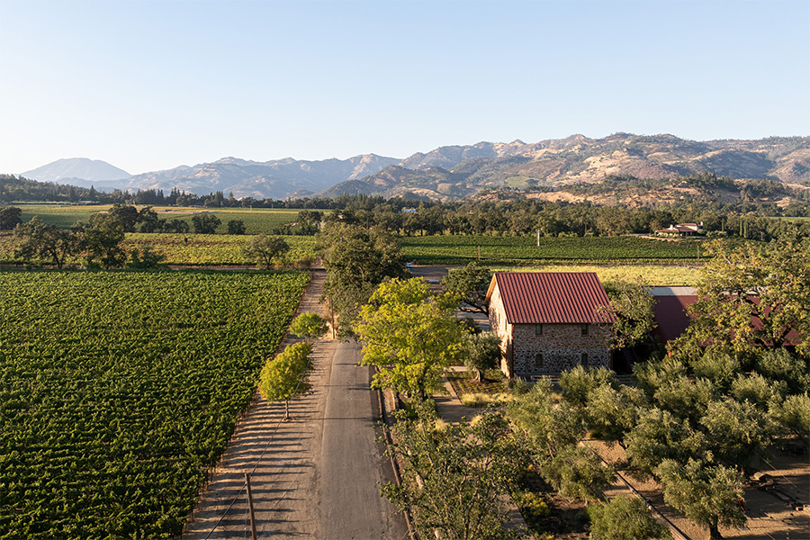 A stone building dating from the 1800s is a dramatic backdrop for the Ehlers Estate tasting room