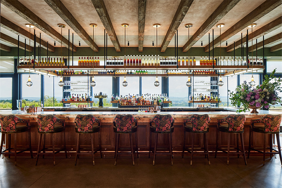 Klocke Estate produces its brandies in New York’s Hudson Valley, on 160 acres of idyllic farmland in the town of Claverack. It was that idyllic setting, overlooking the Catskill Mountains, that inspired Ken Fulk when he was dreaming up the tasting room and restaurant at the distillery designed by Hudson- and Manhattan-based architecture practice BarlisWedlick.