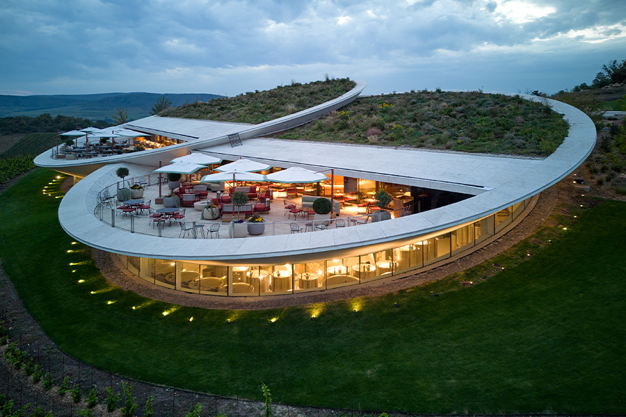The architecture of Sauska Tokaj’s winery engages with the landscape