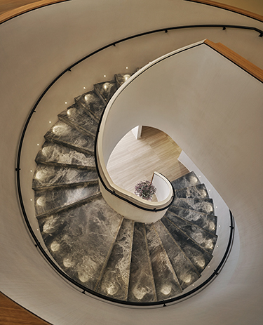 Spa Pendry boasts a sculptural white staircase that connects the spa’s reception area to the treatment rooms below