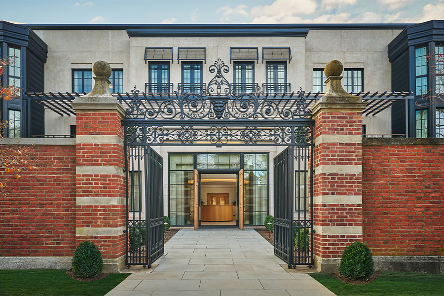 Guests arrive at Spa Pendry through the mansion’s original wrought iron gates