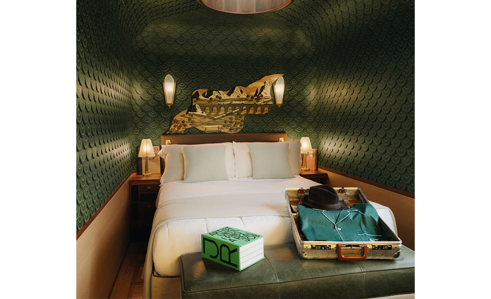 Indeed, the accommodations pack an unusual amount of glamour in their 35 square feet. Taking cues from vintage European train cars and Tokyo’s capsule hotels, they are layered with custom furniture and capped with open ceilings sporting acoustic baffles that allow light and air to filter through. “We were intentional in shaping a space that feels both timeless and grounded in history, yet infused with a sense of discovery,” adds Wilkins.