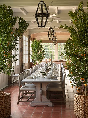 Orange trees line the dining room