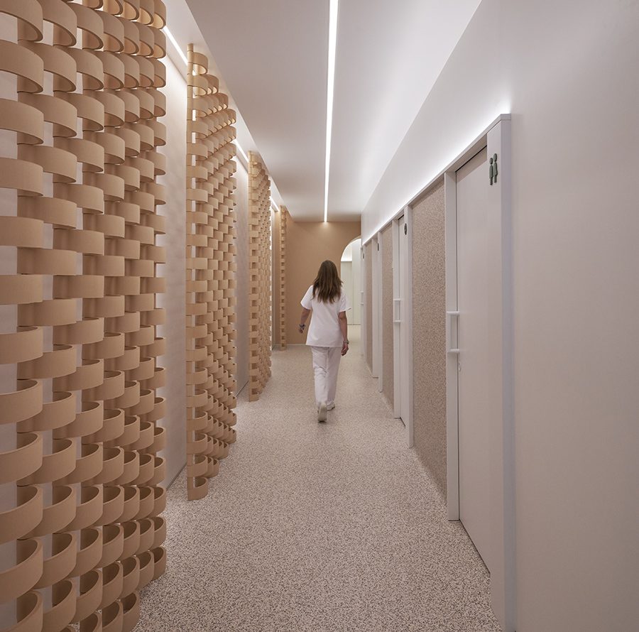 Spanish design studio Vitale crafted Sergio Moralles Podiatry in Castellón to evoke the Mediterranean through a soft palette of sand and stone hues across 4,000 square feet. Here, functional elements like vinyl flooring are offset by thoughtful focal points like ceramic latticework reminiscent of coastal structures. “Mediterranean-inspired references help create an environment that feels more like a retreat than a clinical space, setting a new standard for healthcare facilities in the area,” says Vitale cofounder and creative director Lucía Chover.