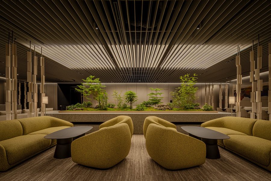 Tokyo’s Museum Tower Kyobashi lobby lounge, designed by I IN Studio; photo by Tomooki Kengaku
