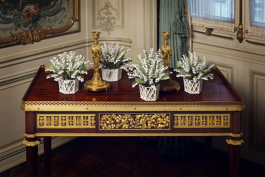 Lilies of the Valley (2024-2025) installed in the Boucher Room of the Frick Collection, New York; photo by Joseph Coscia Jr. and courtesy of the artist