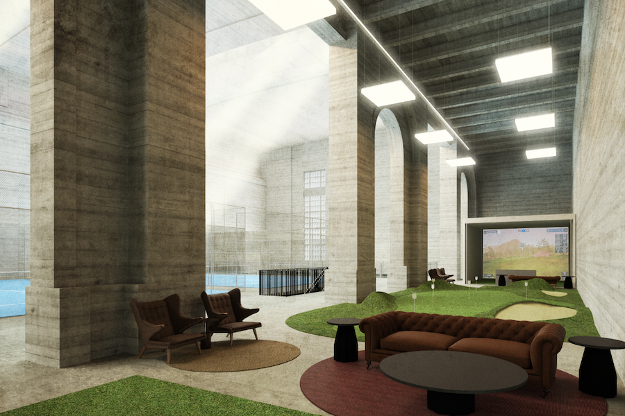 Housed inside Philadelphia’s landmark Turbine Hall, the 55,000-square-foot spaces features six pickleball courts, three padel courts, squash, turf, and golf simulators, all beneath soaring 75-foot ceilings.